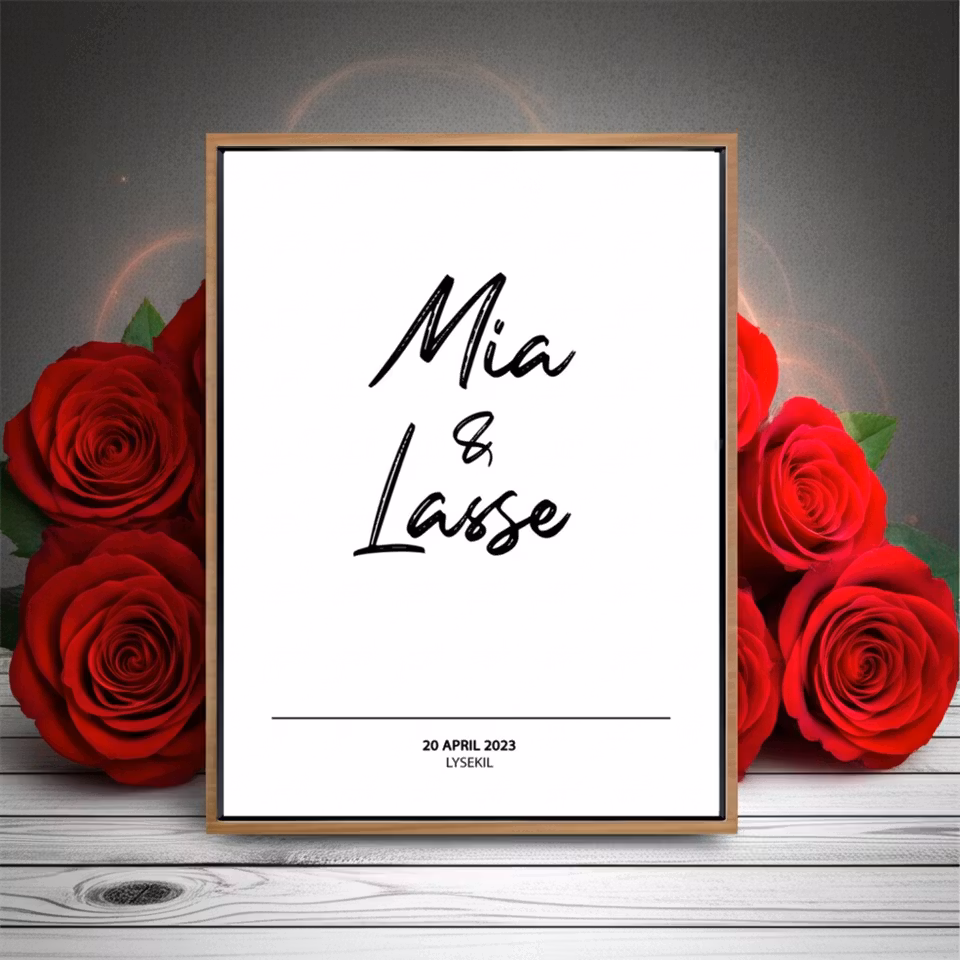 Skapa ett romantiskt och minnesvärt inslag till bröllopsdagen med våra personliga bröllopsposters. Här hittar du unika motiv skapade med känsla, elegans och mjuka detaljer – perfekta som gåva till brudparet eller som dekoration till den stora dagen. Postrarna kan anpassas med namn, datum, koordinater, löften eller citat som gör motivet helt unikt för paret. Varje design skapas exklusivt för Boliboo i en harmonisk stil som passar både moderna och klassiska hem och efter eget önskemål. Den perfekta gåvan för kärlekens alla stunder – från förlovning och vigsel till jubileum. Personliga bröllopsposters som fångar kärleken och blir ett minne för livet.