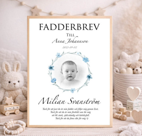 Skriv din personliga text i fältet “Text till fadderbrev".